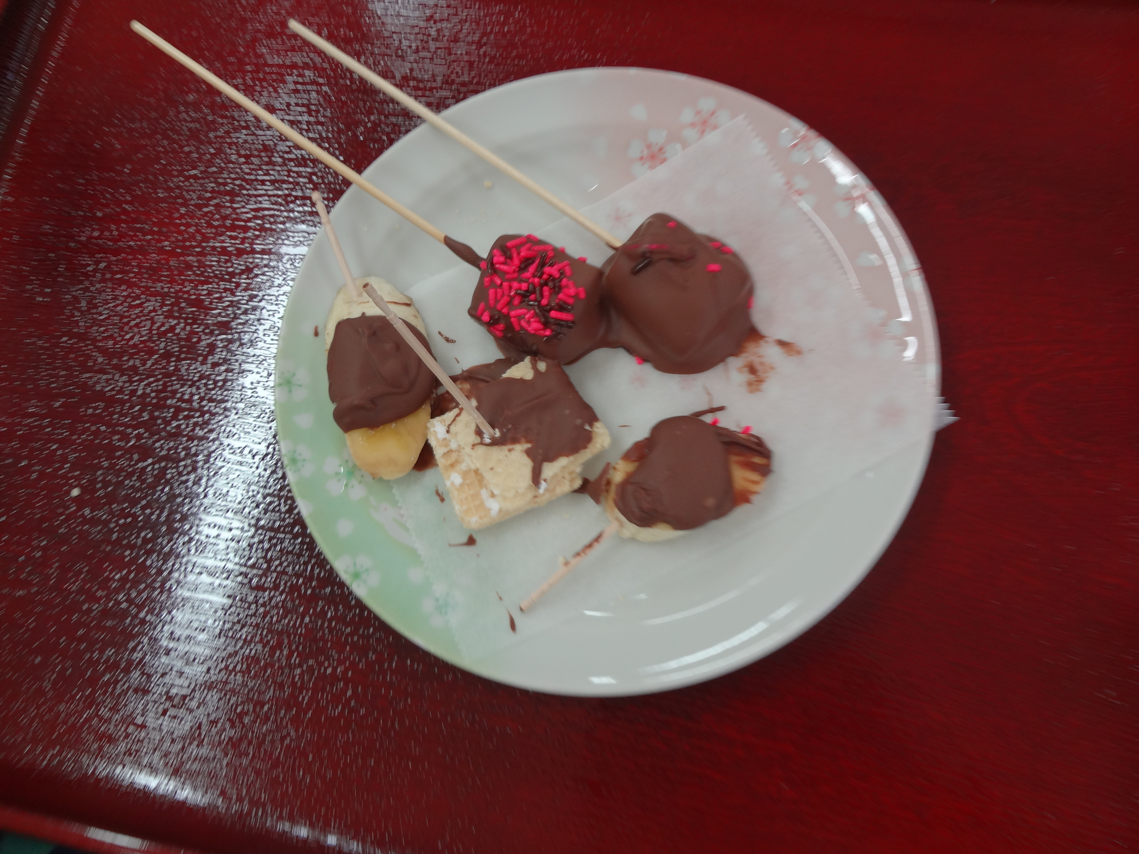 まずは、マシュマロ、バナナ、ウエハースをチョコレートで