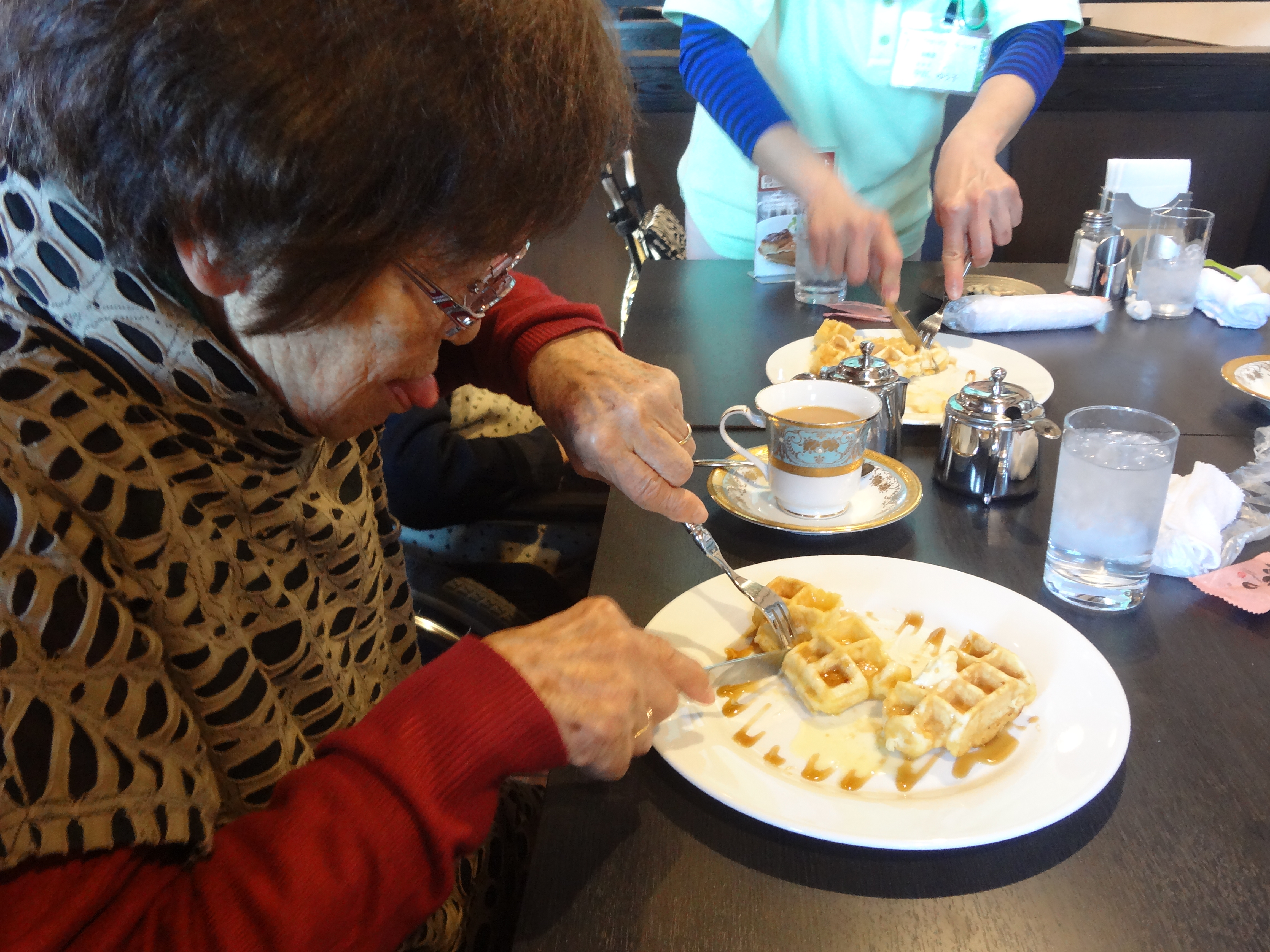 慣れないフォークやナイフを使い悪戦苦闘しながらも、