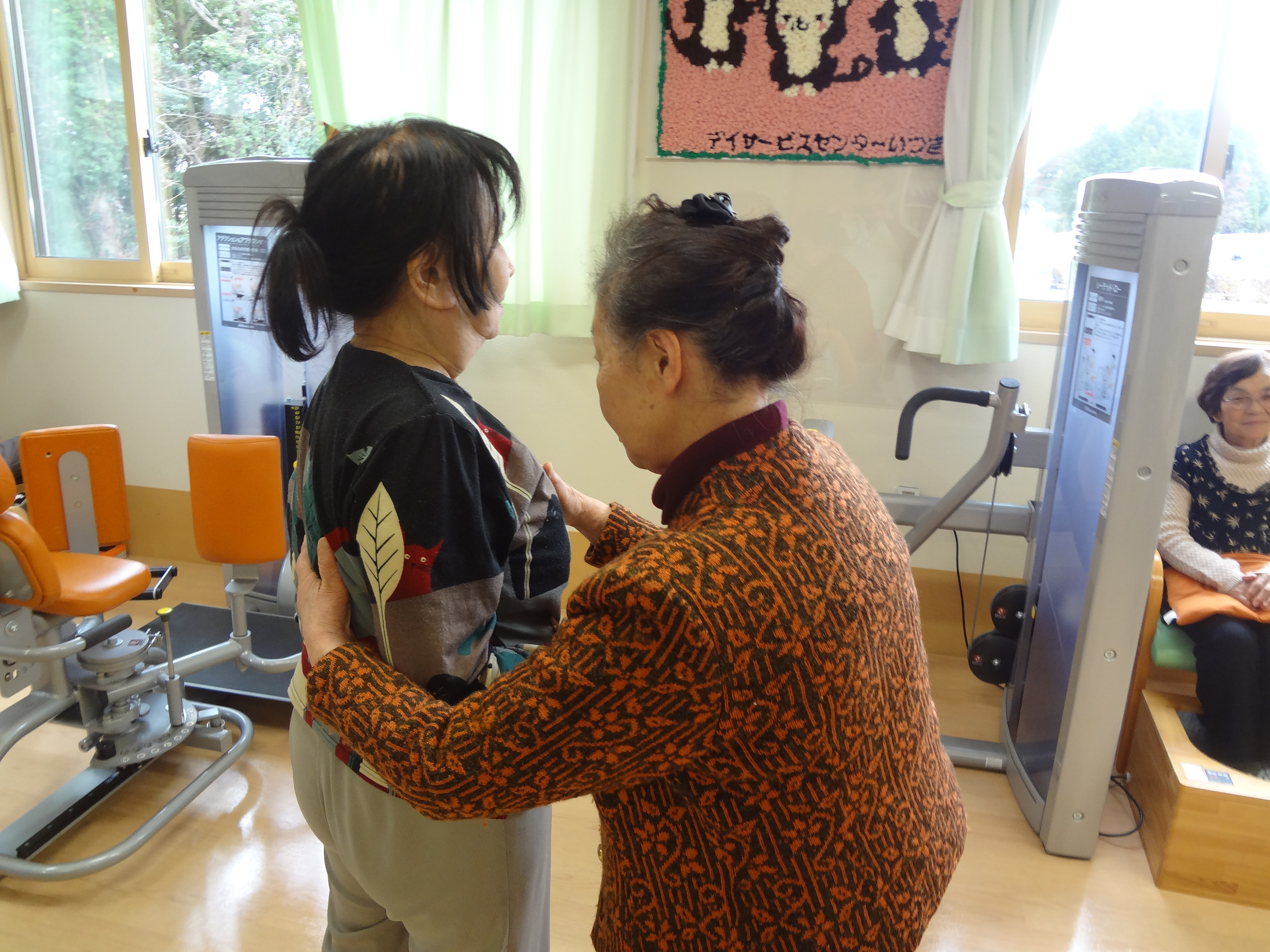 ご利用者様二人が体の使い方のコツを教えあっていたので、後ろからそ~っと聞いていました。聞いていてとても良い勉強になりました。