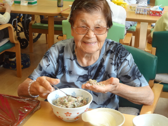 なんと今回のごちそうの日の餃子は、ご利用者様に包んで頂きました(^^)♫