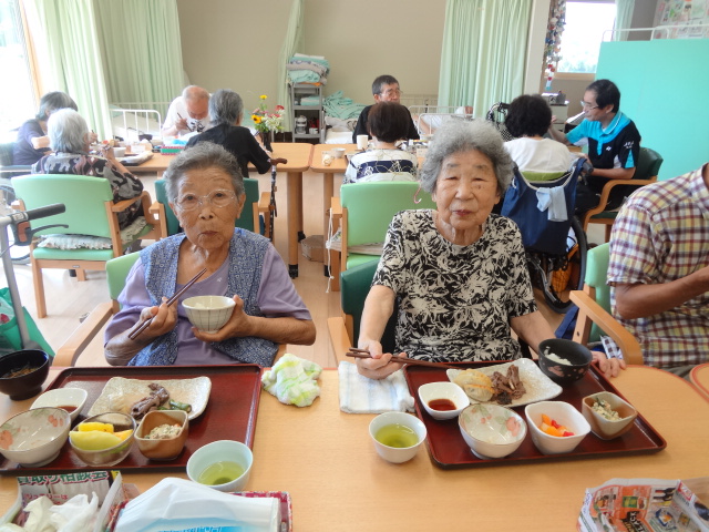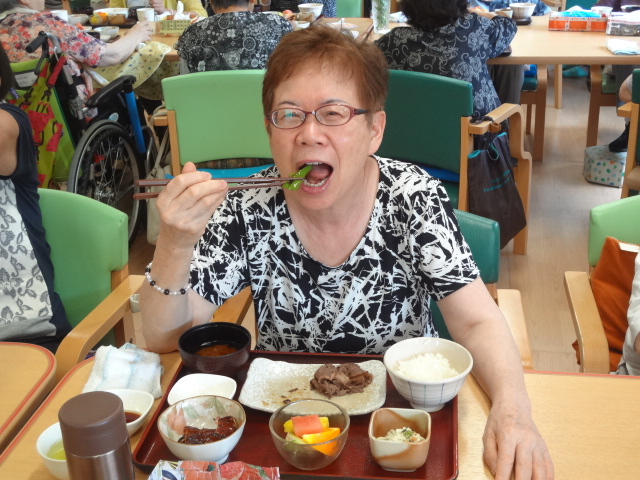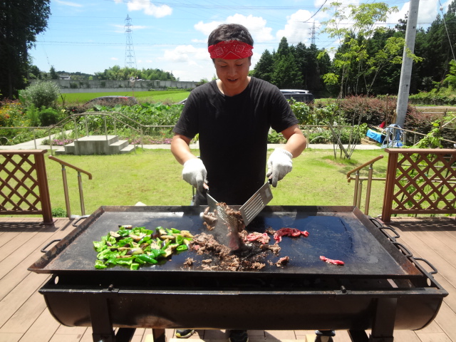 そして外では、機能訓練の岡田先生が気合を入れて皆様の焼肉を焼いてくれました☺♫
