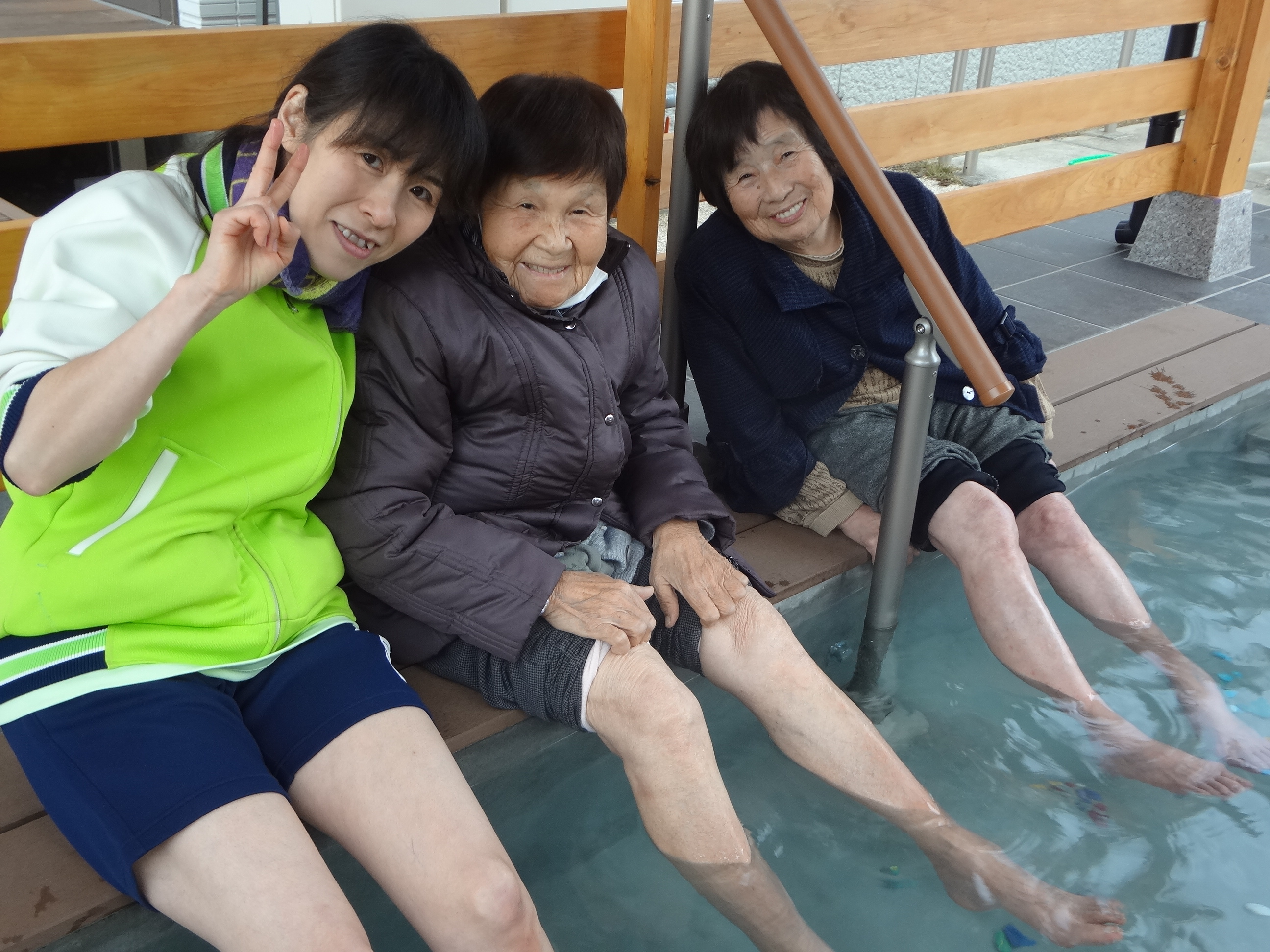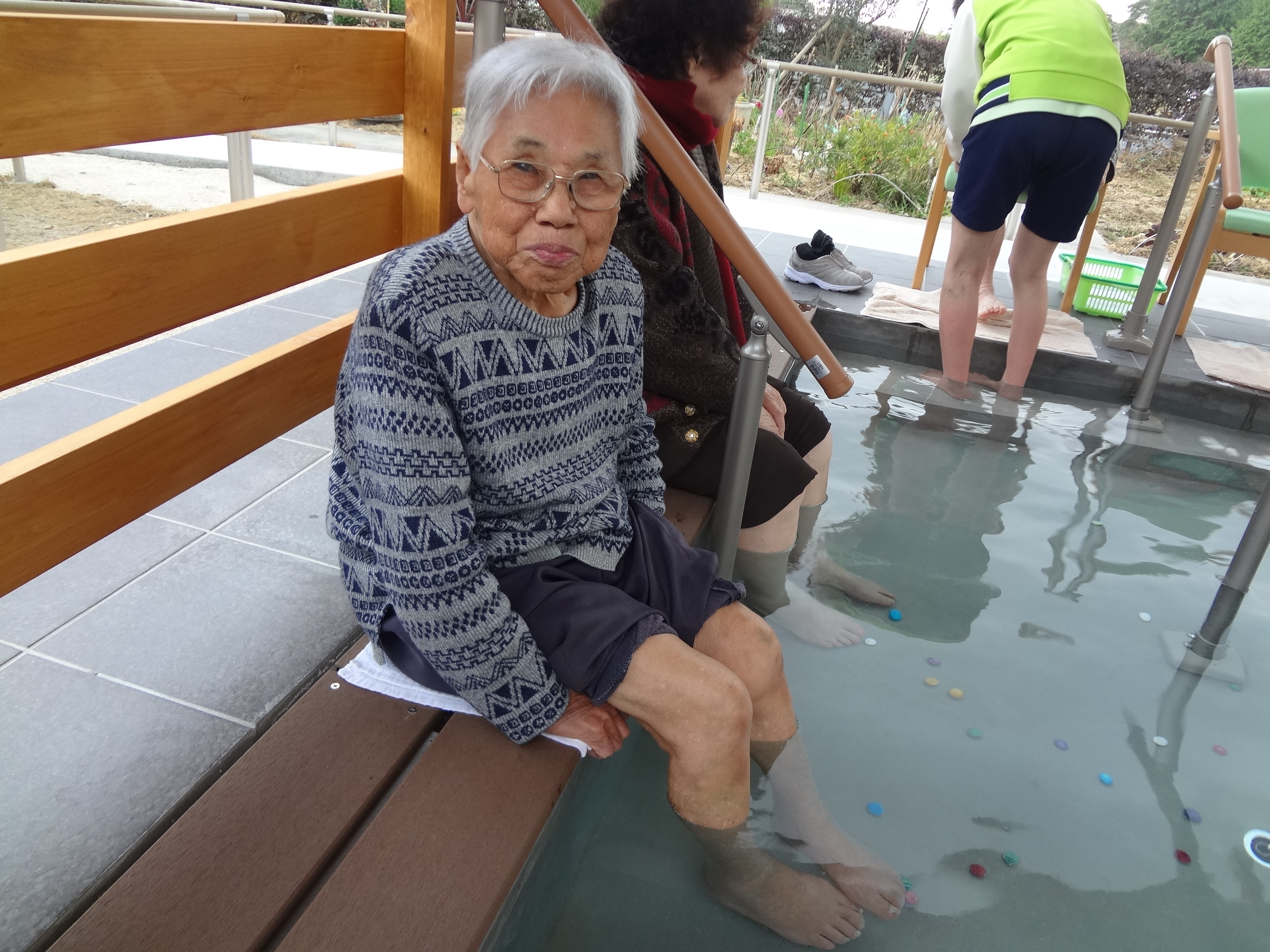 車いすの方でも安心して、足湯に入って頂ける様に常時職員が、居ますので皆様ぜひ皆様