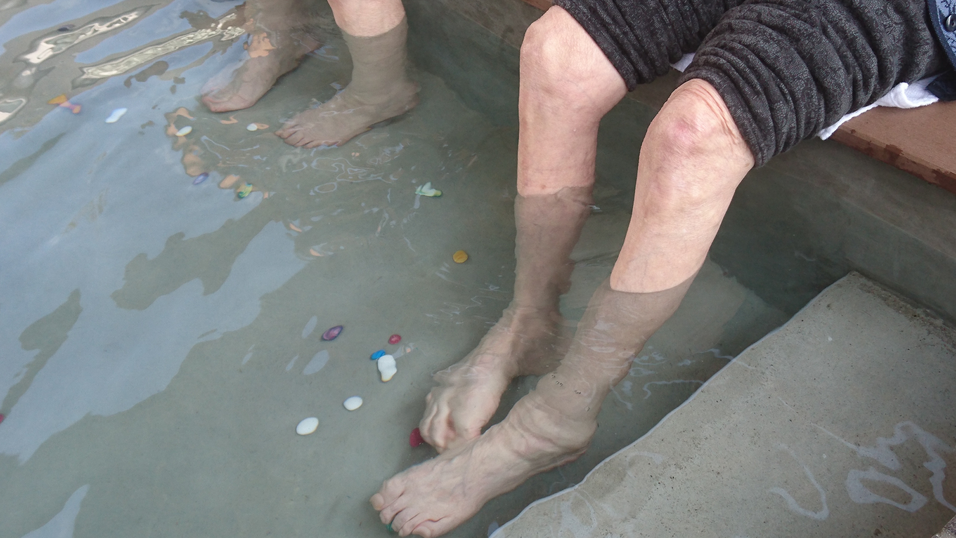 こちらは、お湯の中で、おはじきを掴むリハビリです。