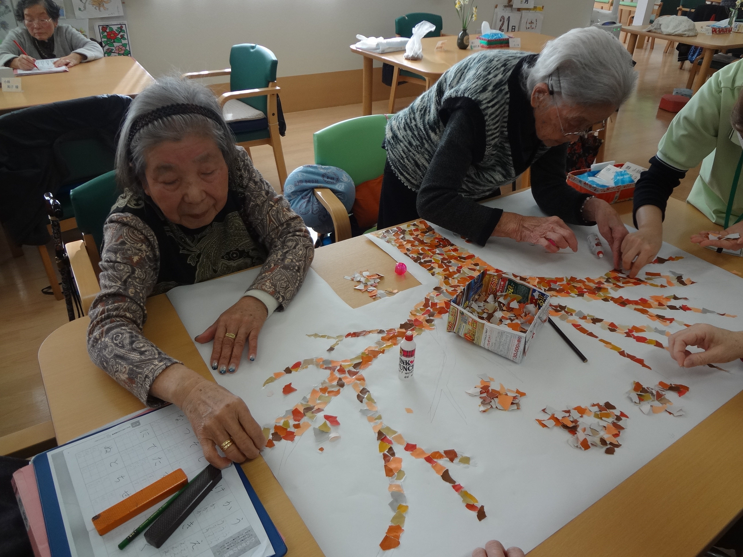 折り紙をちぎって貼ってくれています(^^)
