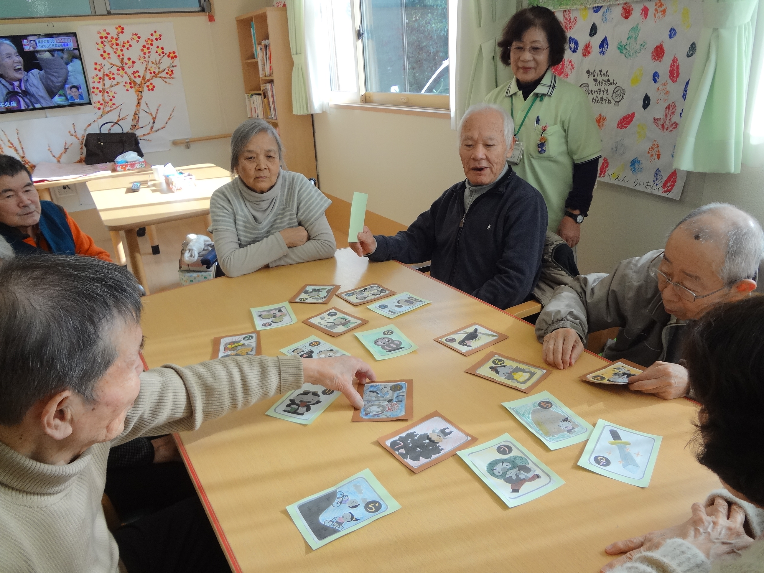こちらのカルタも手作りです♡ご利用者様が事前に色を塗ってくれました(^^)