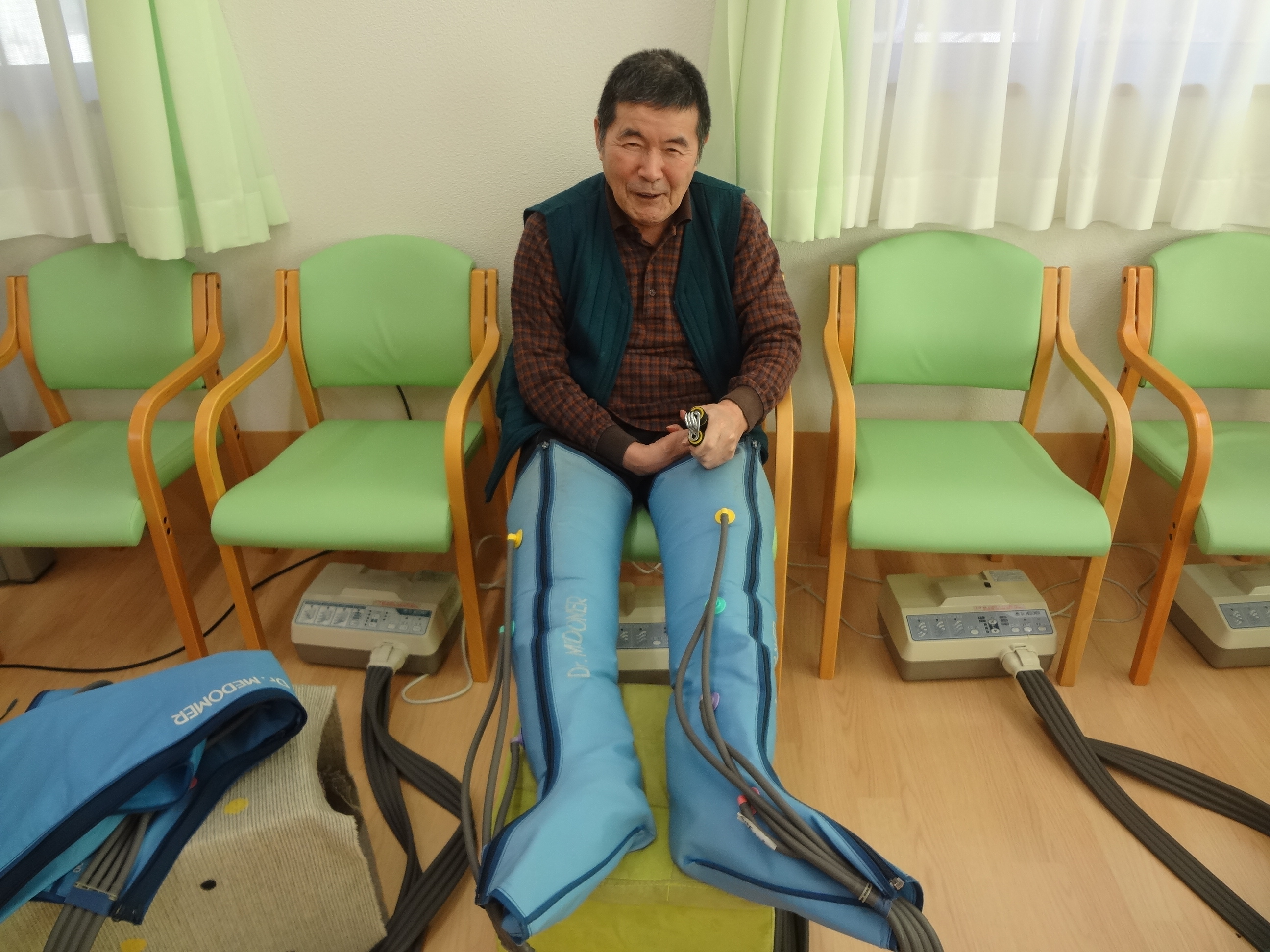 見慣れないスタッフが機能訓練風景に写っております!