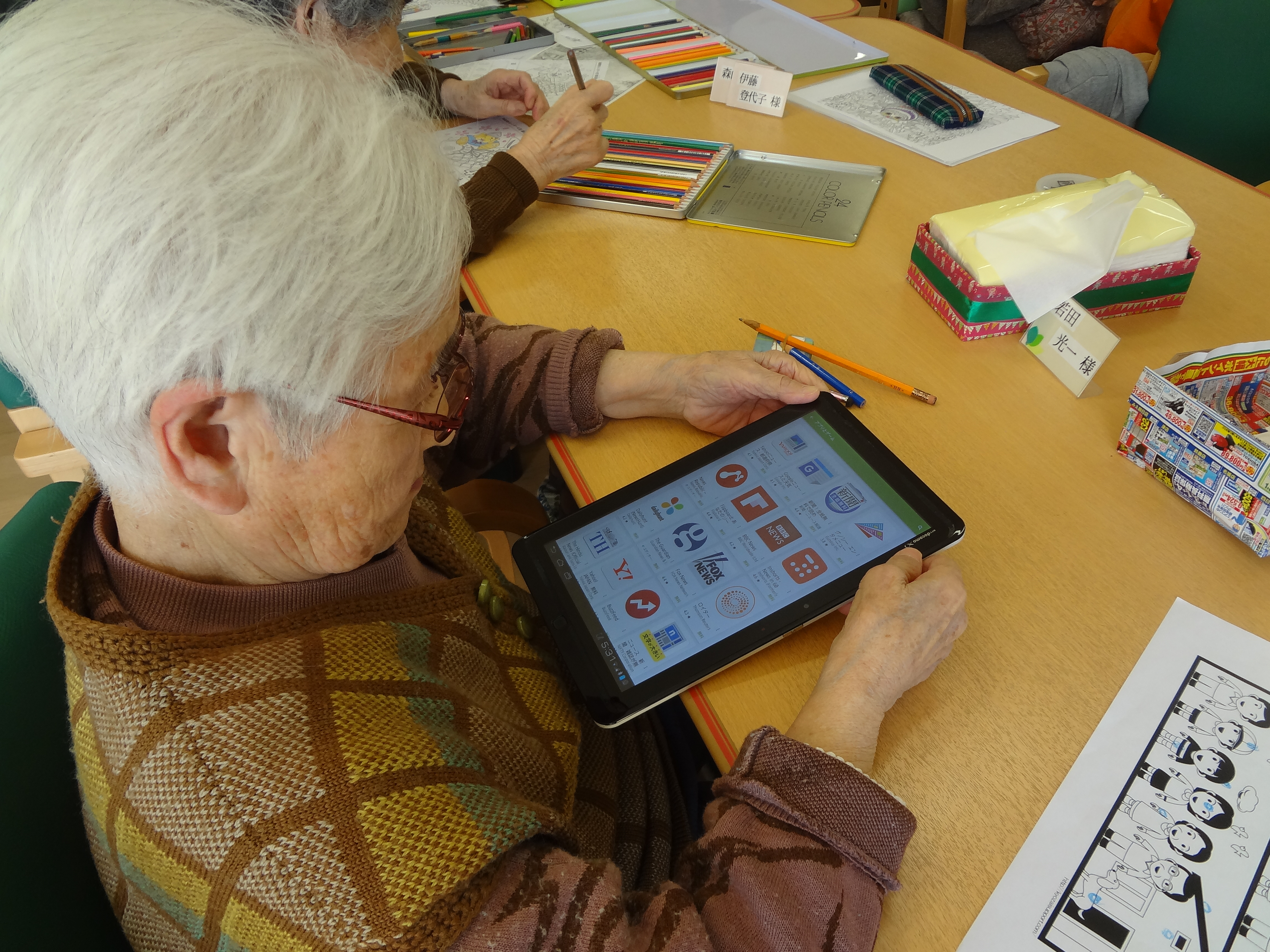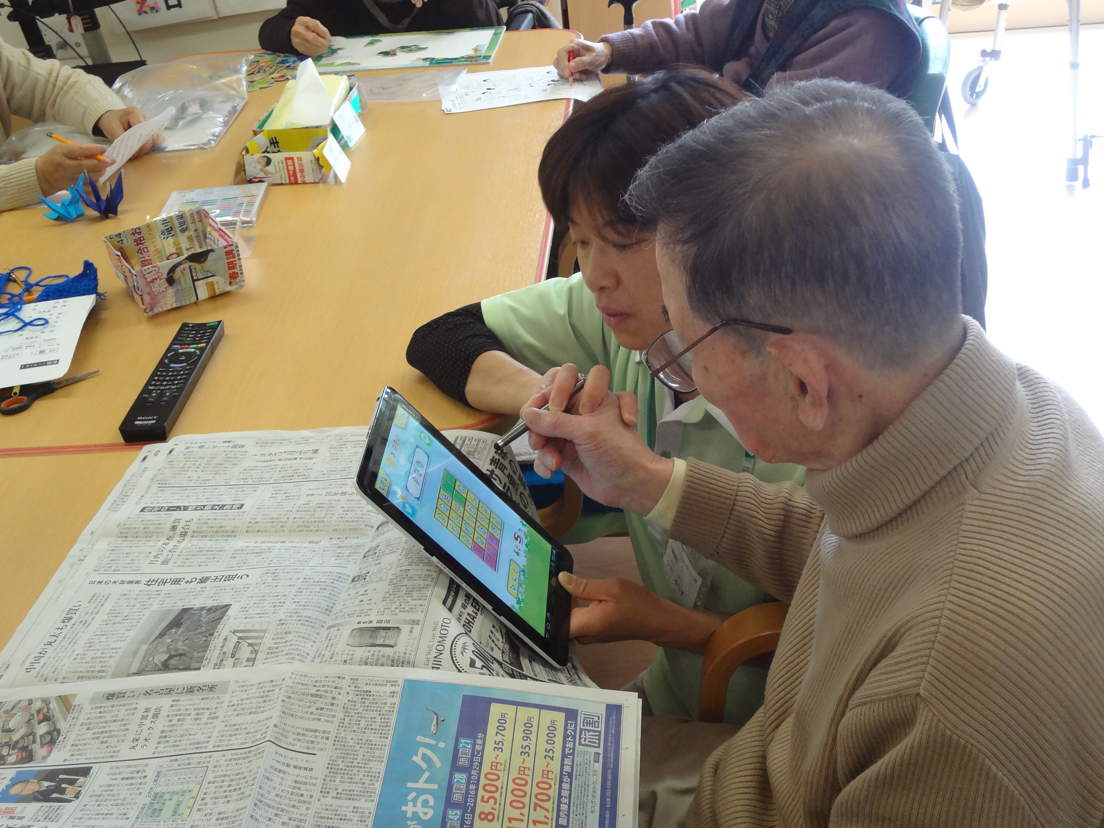 タブレットの中には、ことわざ、計算、将棋、間違い探し、、その他にも沢山楽しいアプリが入っていて皆様とっても集中してタブレットと向き合ってみえます♪