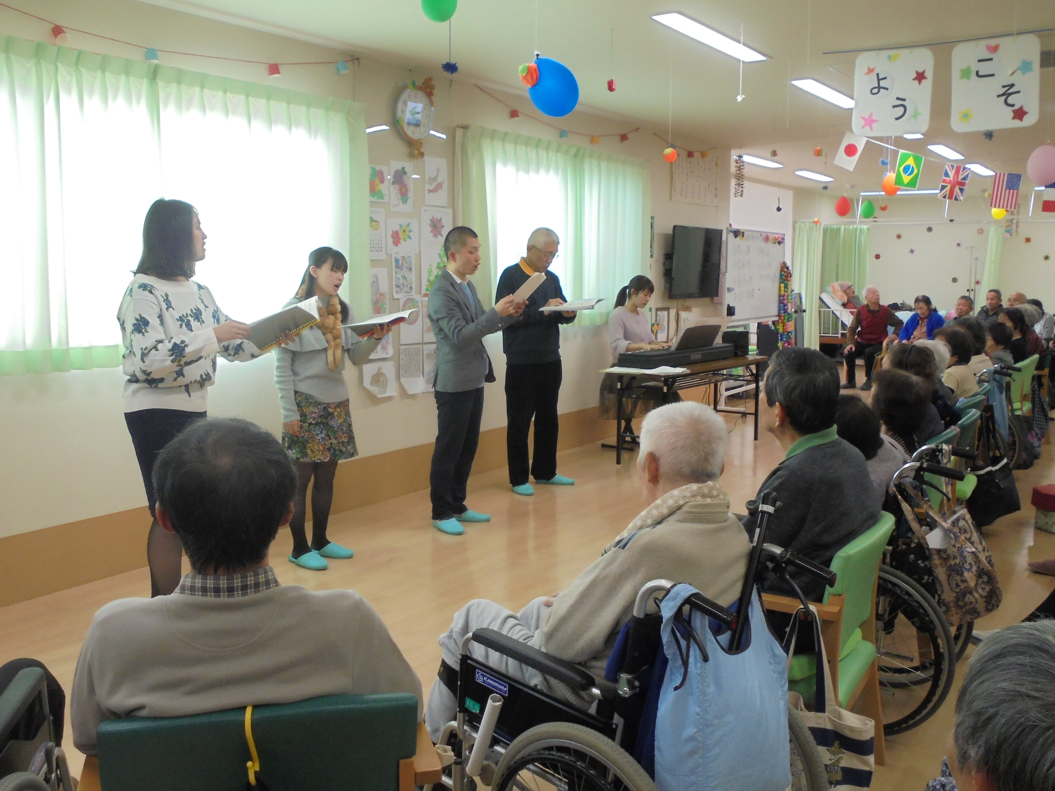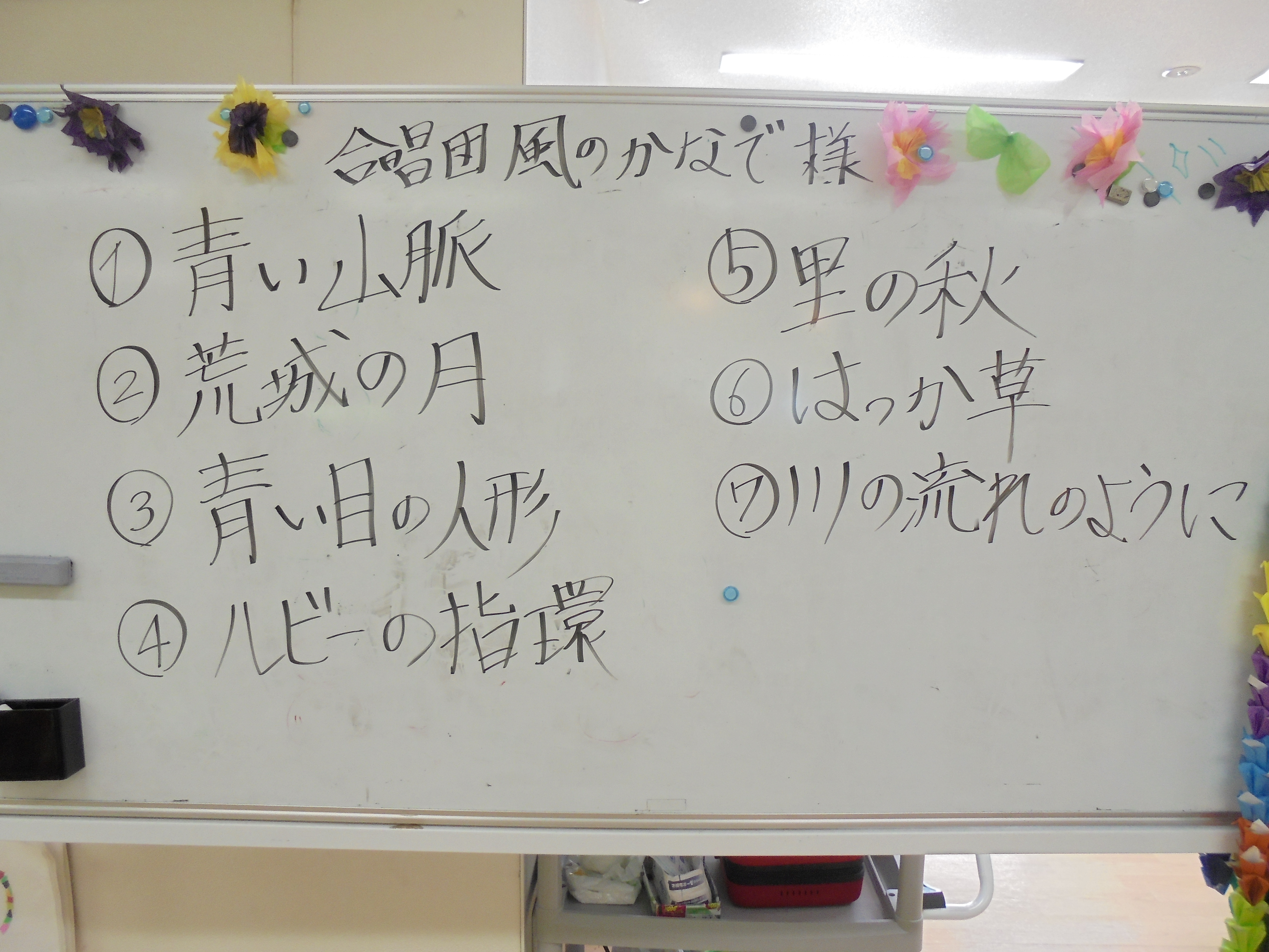 ご利用者様のお馴染みの曲から、童謡まで素敵なハーモニーがいつきに広がりましたよ♪