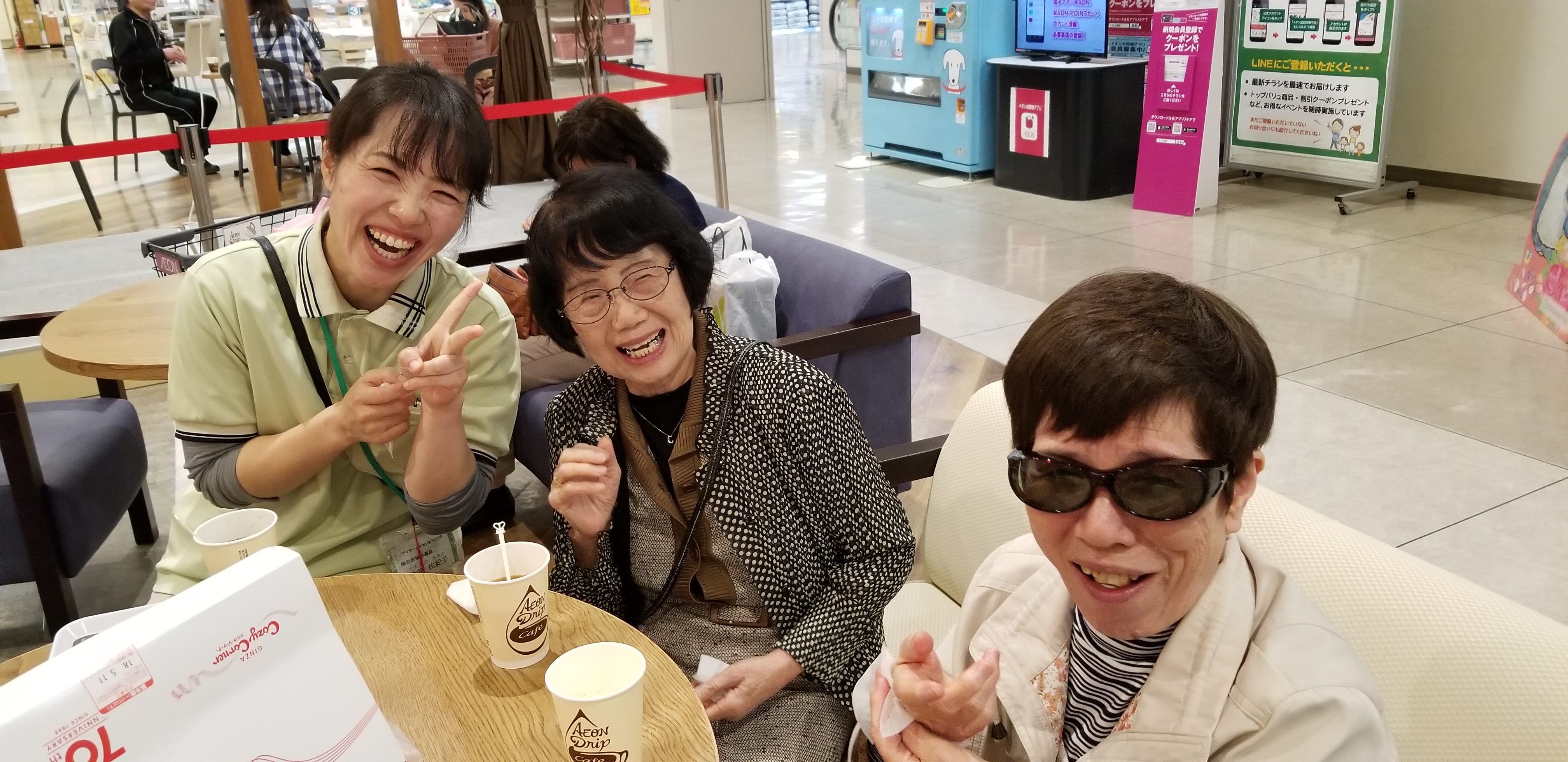 フードコートでお茶会や、