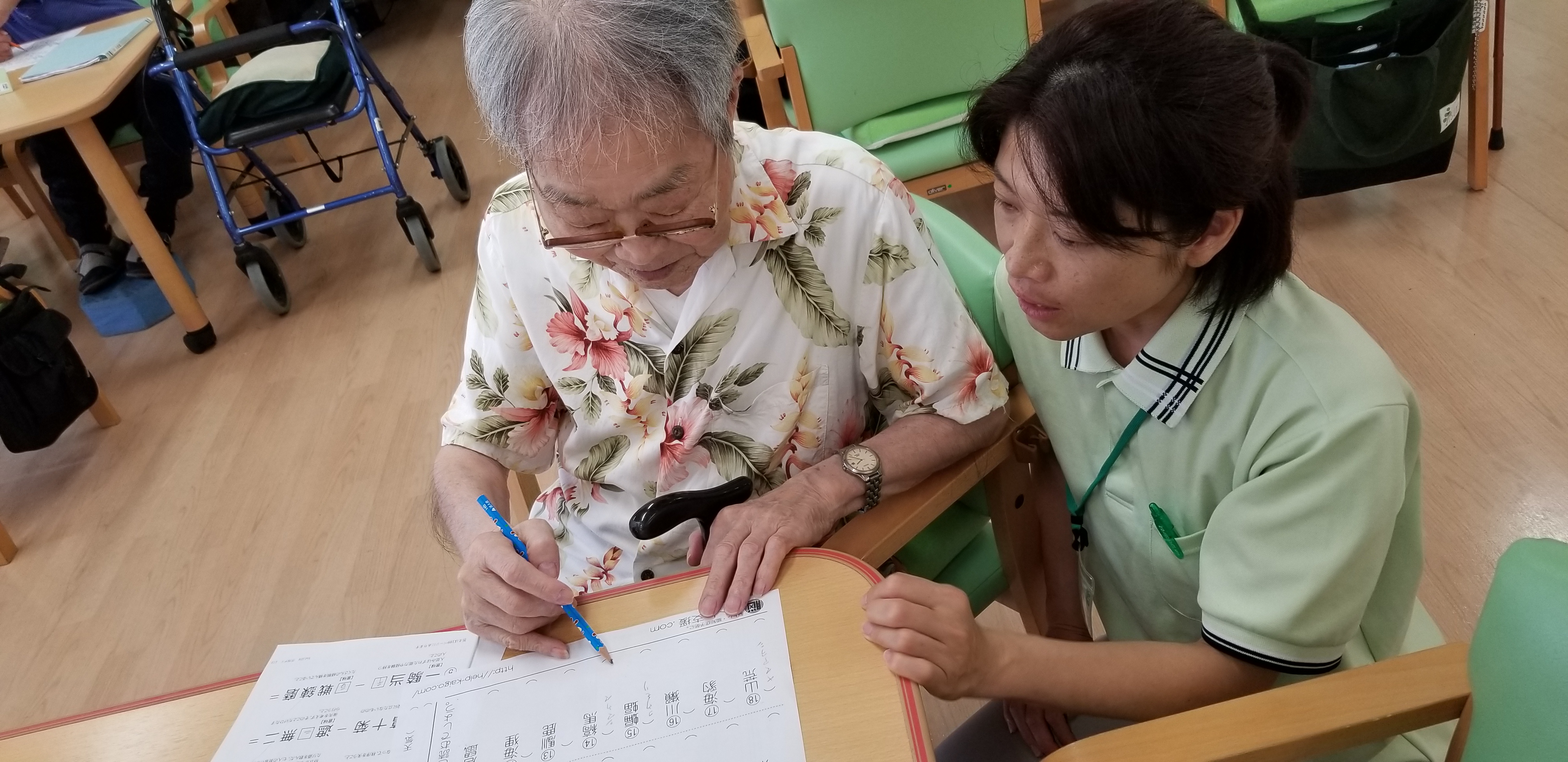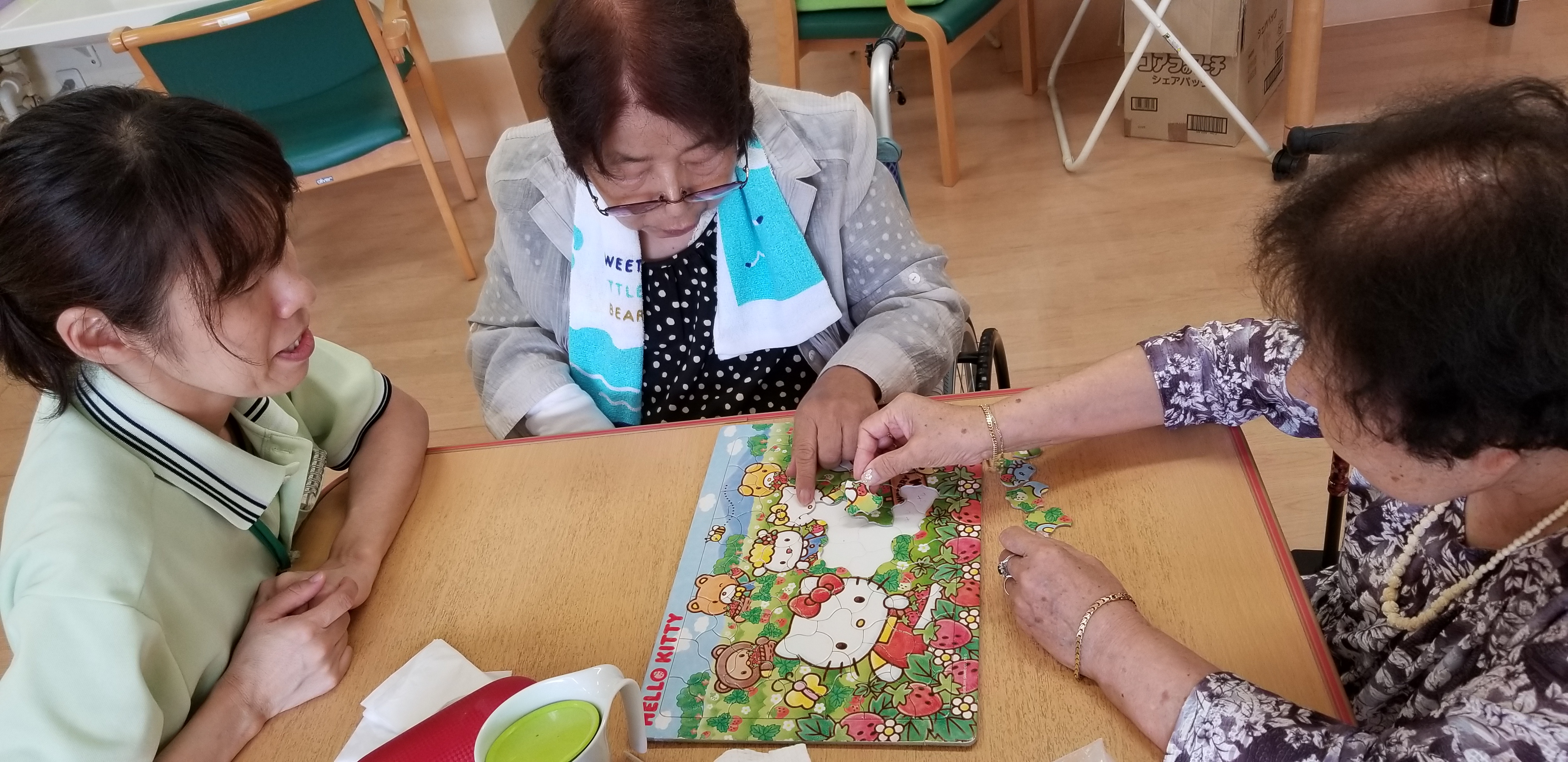 こちらのテーブルでは、ご利用者様同士協力し合って、パズルをしてみえました☺