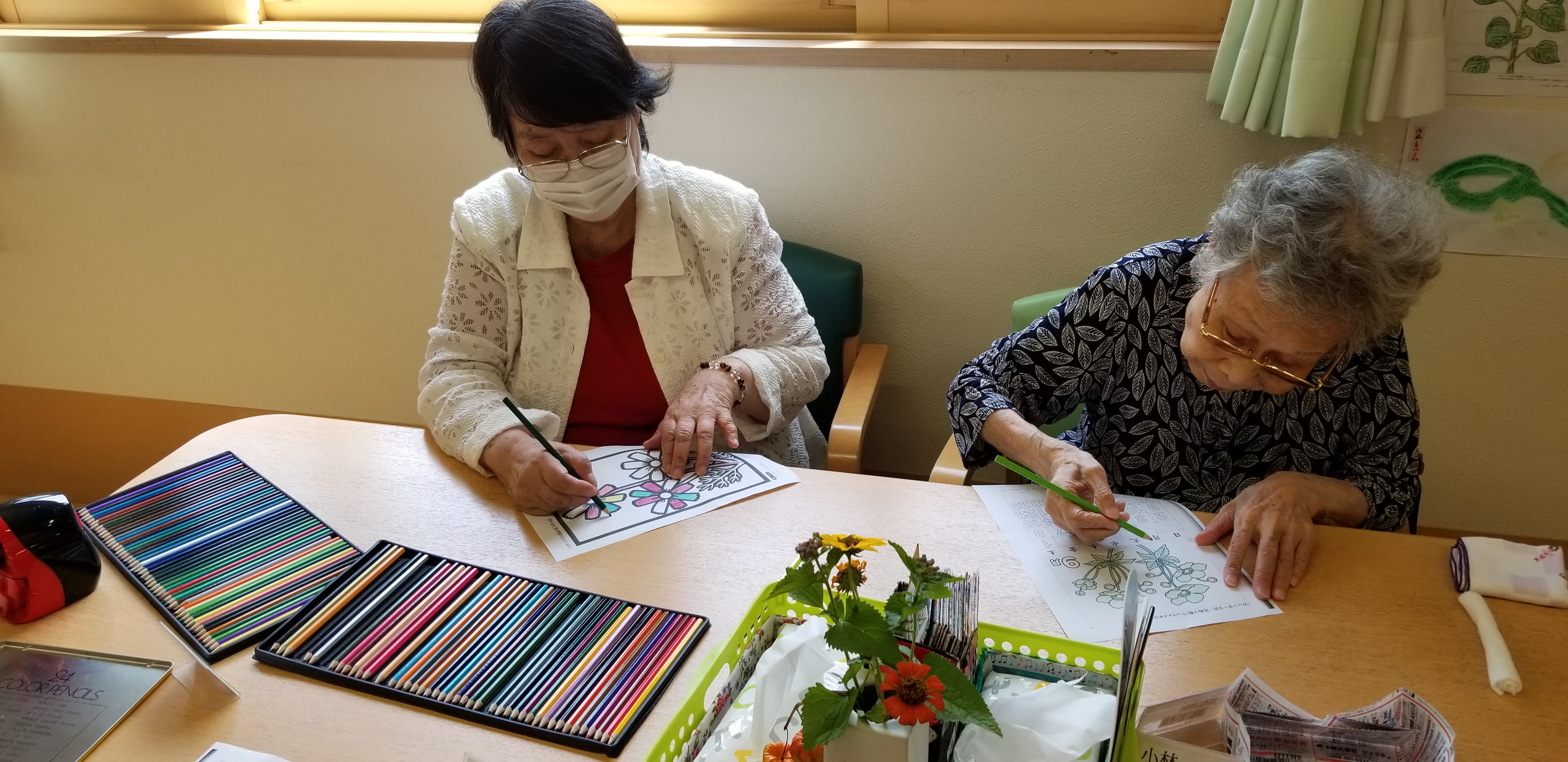 沢山の色鉛筆を使って、ぬり絵をされていました♡