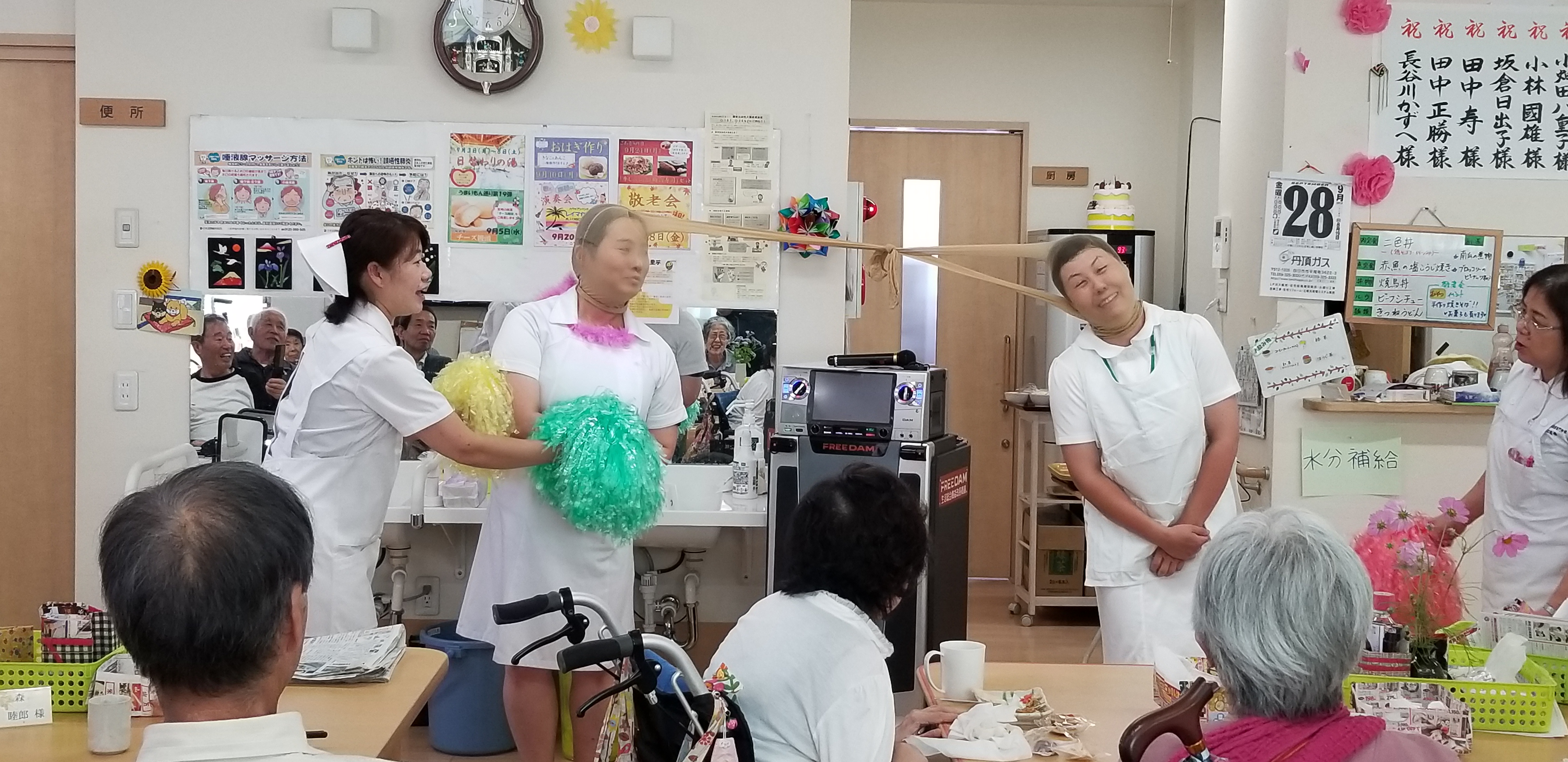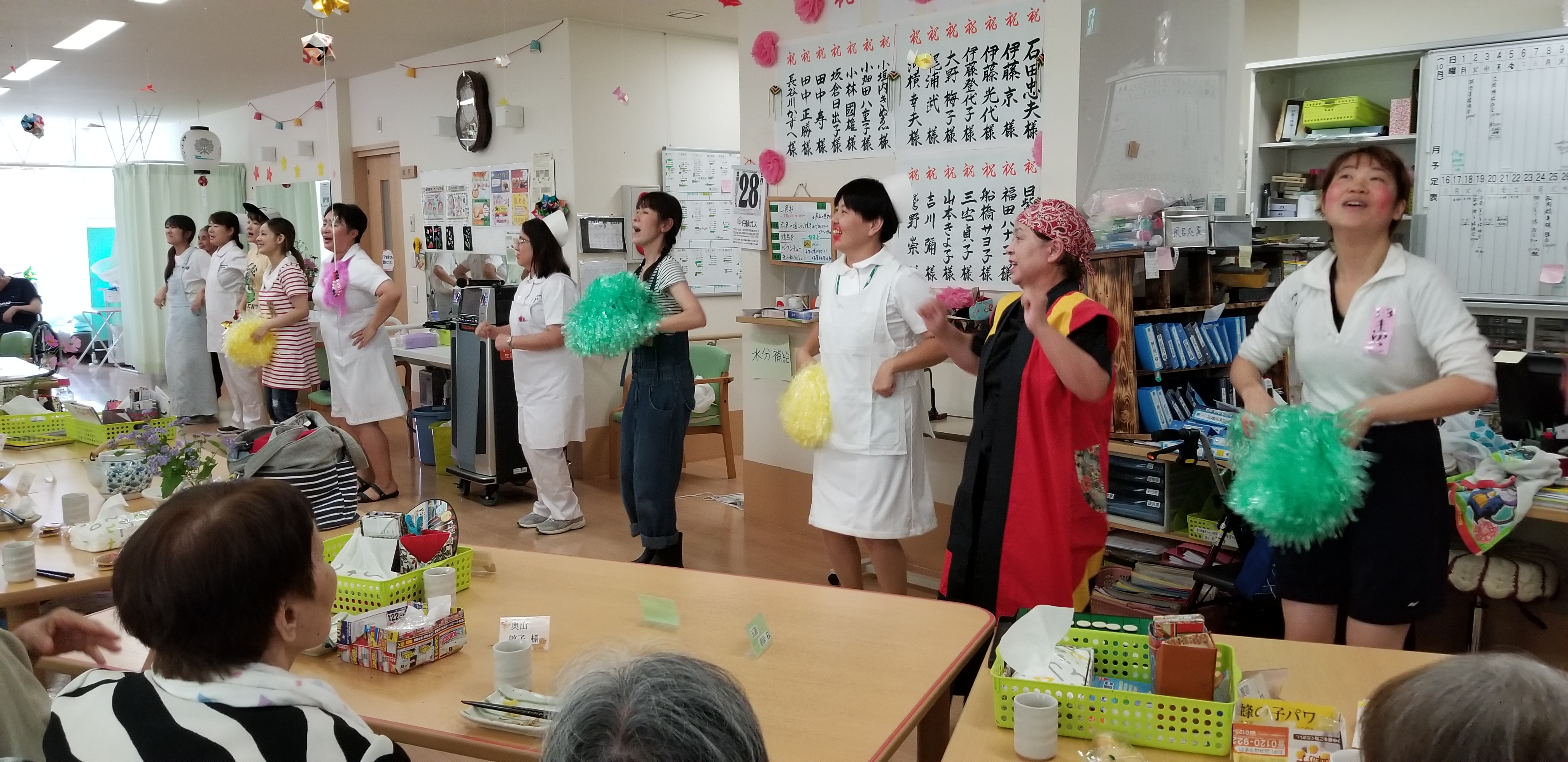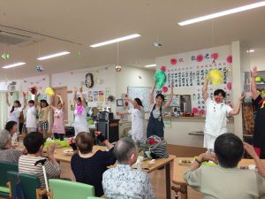 9月と言えば、、、「敬老の日」 9/17は敬老の日ですが、いつきの敬老会は28日!! という事で、本日ははいつきの敬老会です! 日頃の感謝を込めて職員頑張りますので、 みなさん!!おもいっきり笑って、食べて楽しんで下さ~い(*^_^*)♡ 今年は、どんな敬老会になるでしょうか? 楽しみです♡ 本日は、焼きそばを食べながら、職員の演芸をお楽しみ下さい♡