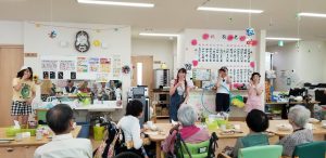特技や、ゴム飛びを披露してくれました♡ 小学生が出てきた瞬間の皆さまの大盛り上がり(笑) 続いては、職員による沖縄民謡と太鼓でかっこよく決めます!