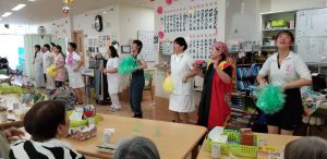 沖縄の歌手も登場し、太鼓の音も広がりいつきは沖縄に大変身(*^_^*) そして、最後は職員全員で、「YMCA」