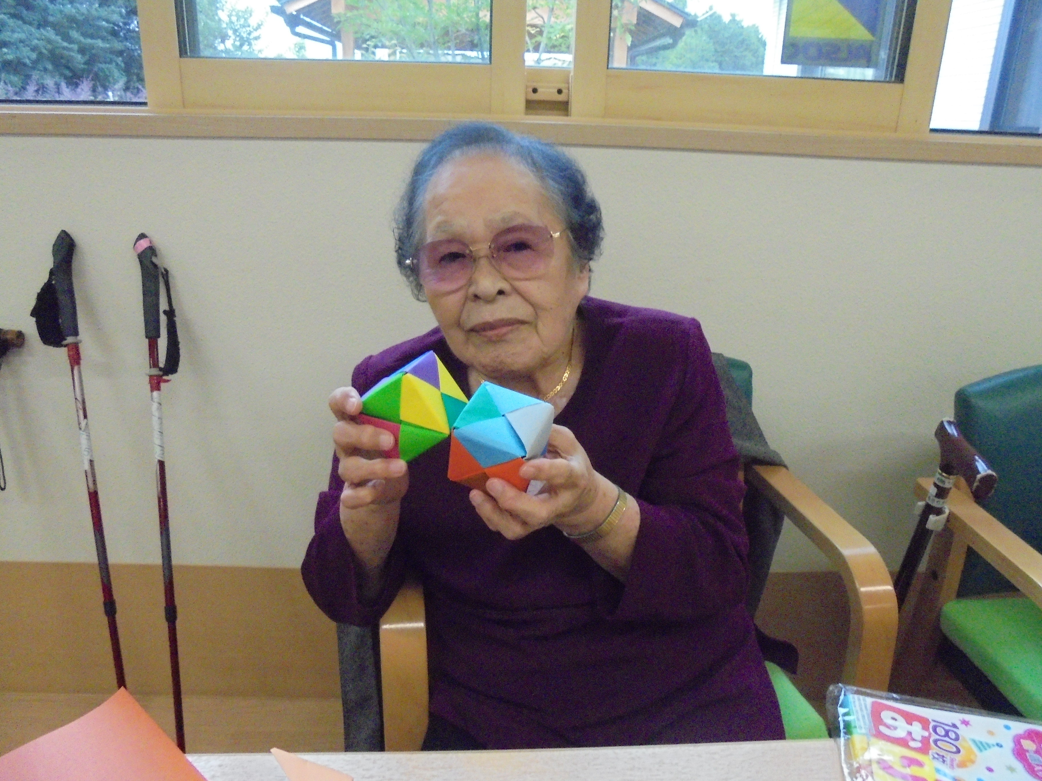 「私も折り紙でサイコロ作ってみたいな~」とおしゃっていたご利用者様。