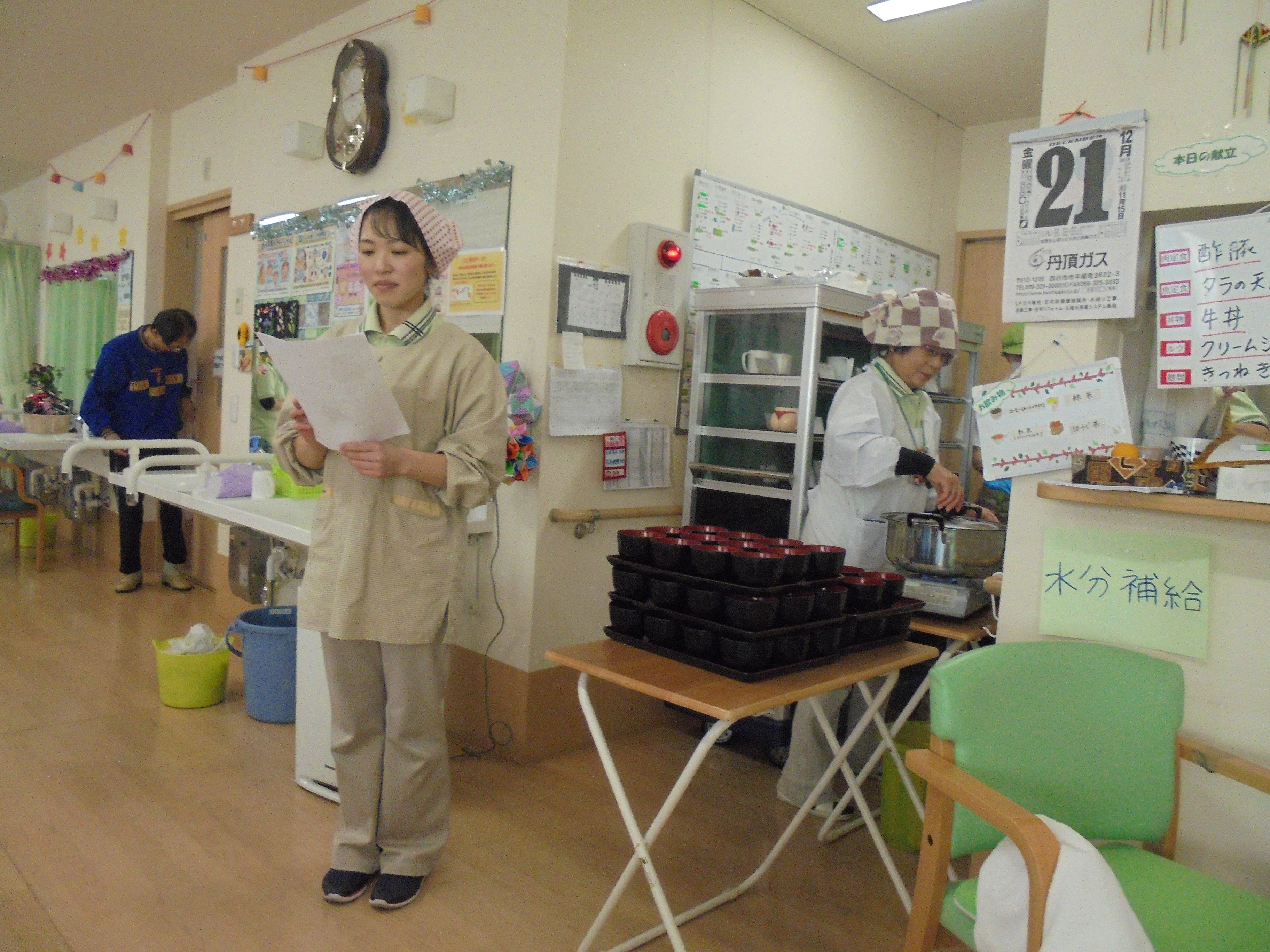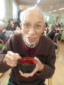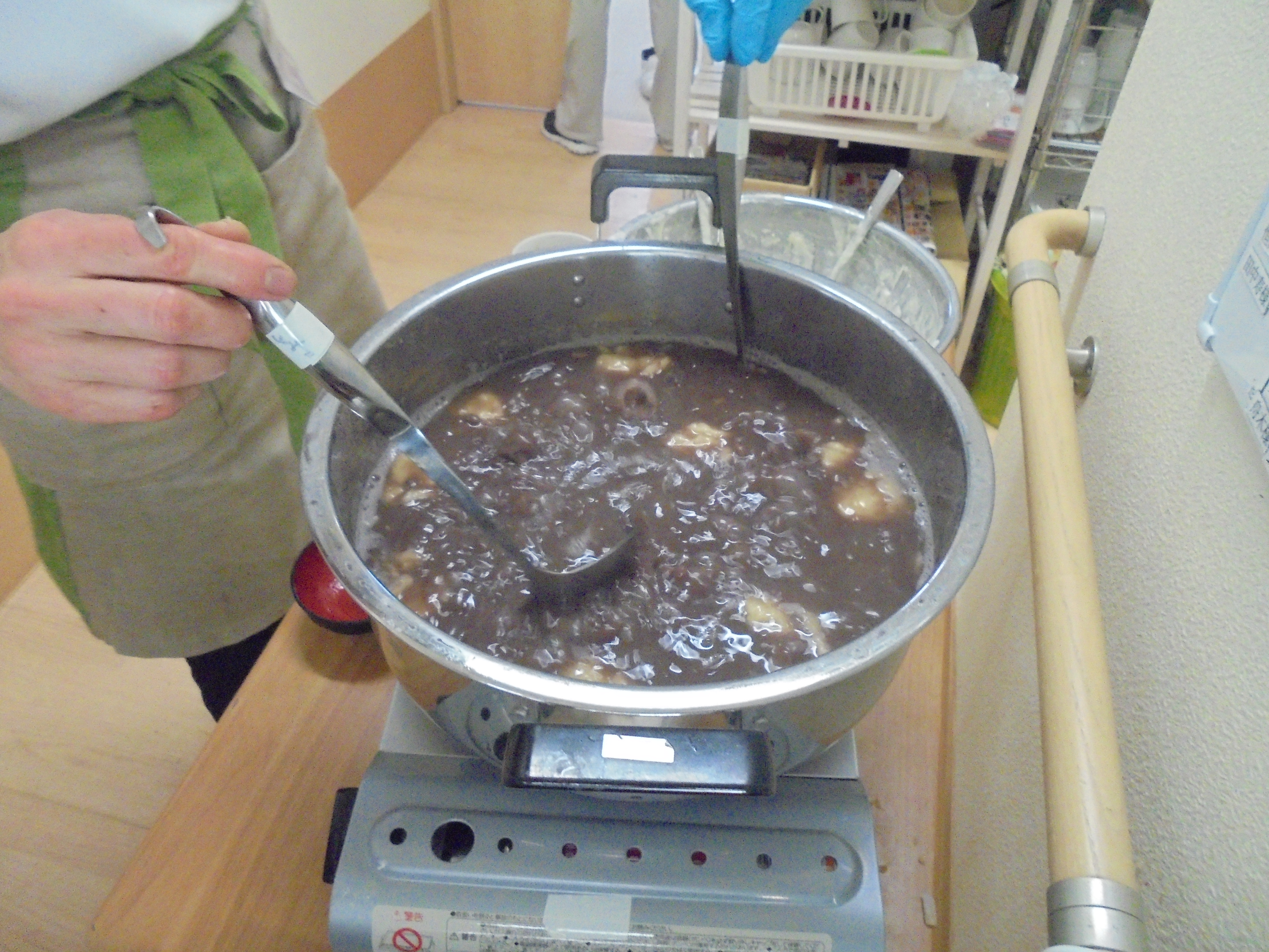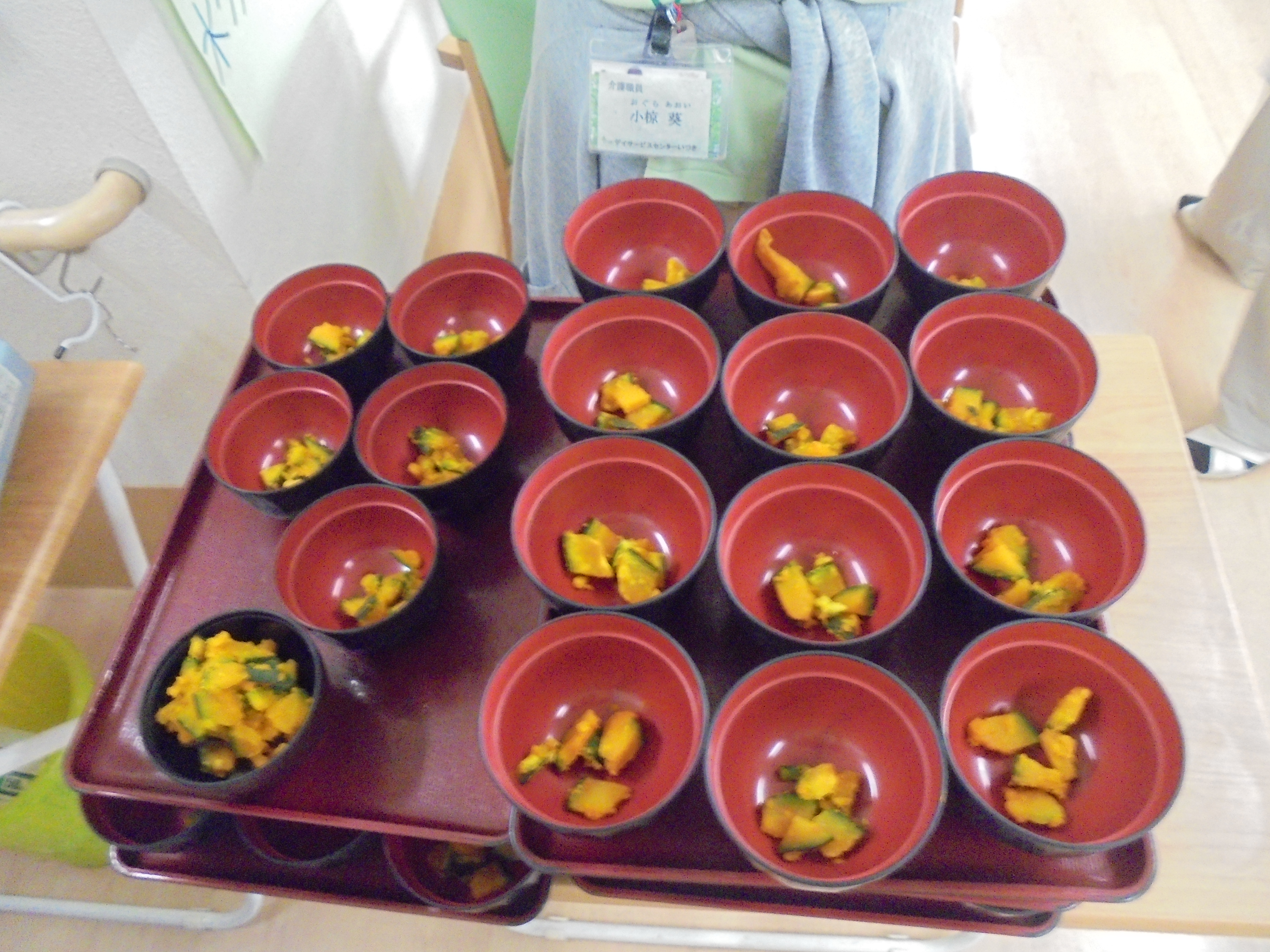 今日はかぼちゃ入りぜんざいをおやつの時間に食べていただきました。