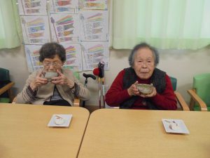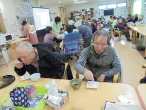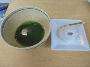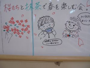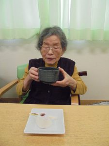 今日はご利用者様に桜もち・抹茶を楽しんでいただきました(^^)