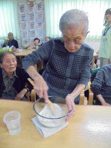 ご利用者様にも桜もち作りを手伝っていただきました~(*^-^*)