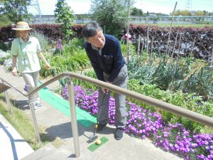 パターゴルフが始まり、歓声が聞こえてると引き寄せられるように外へ