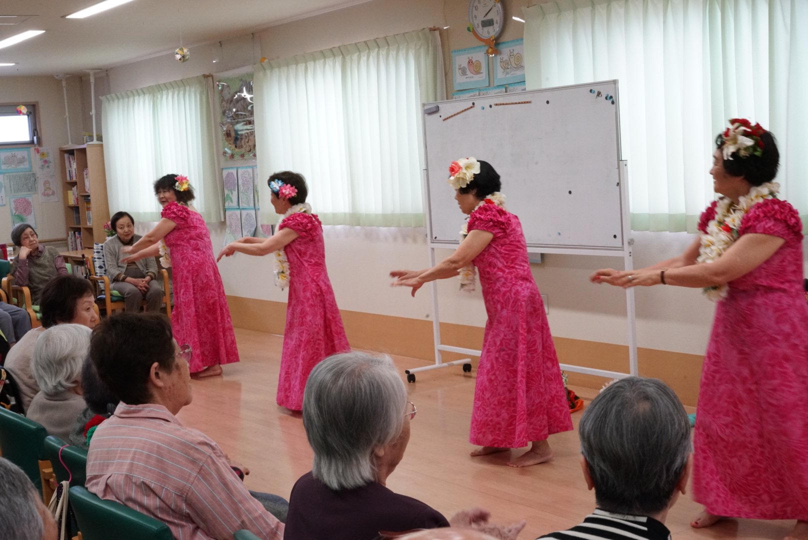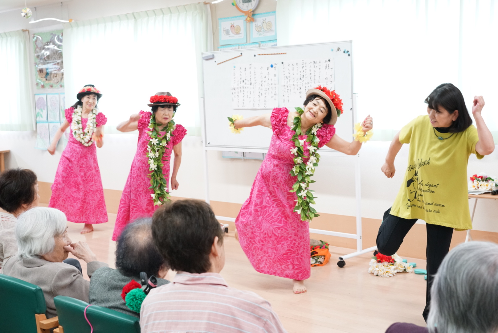 「私もあんなん踊りたいわ~」など、特にダンス経験のあるご利用者様は一緒にフラダンスに挑戦されていました~(*^^*)