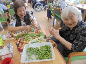いつき農園でとれたインゲンのヘタとりを