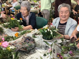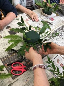 皆様、笑顔でお花を選びながら、慣れた手つきでオアシスにお花をいけてみえました(^^)/