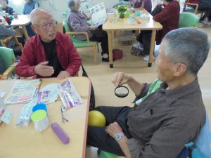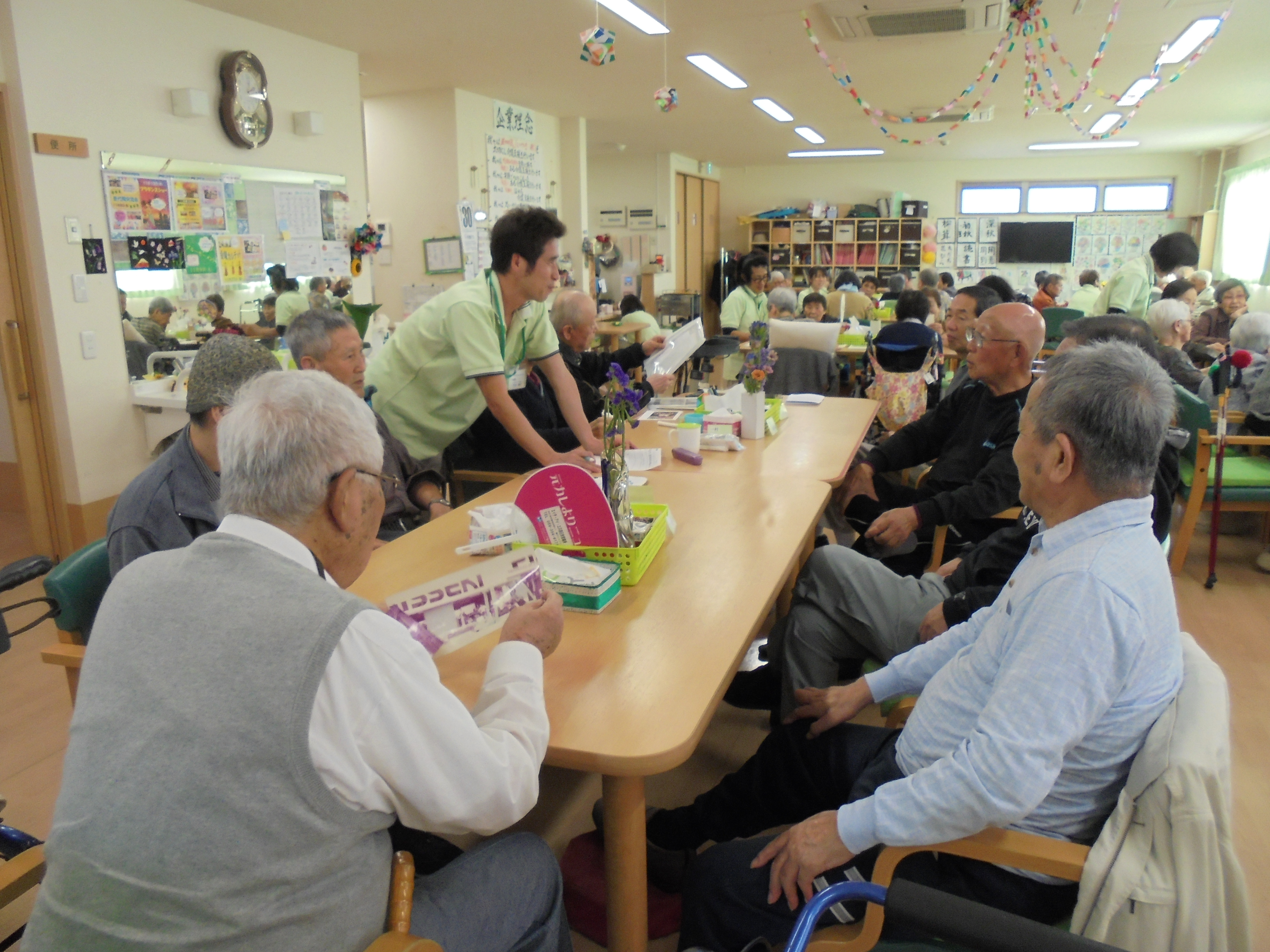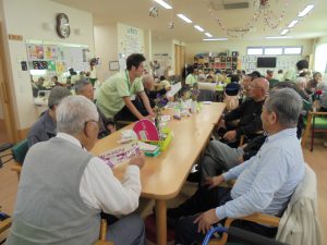 いつもは口数が少なめな男性のご利用者様の皆さんも宴会のように盛り上がっていただきました。