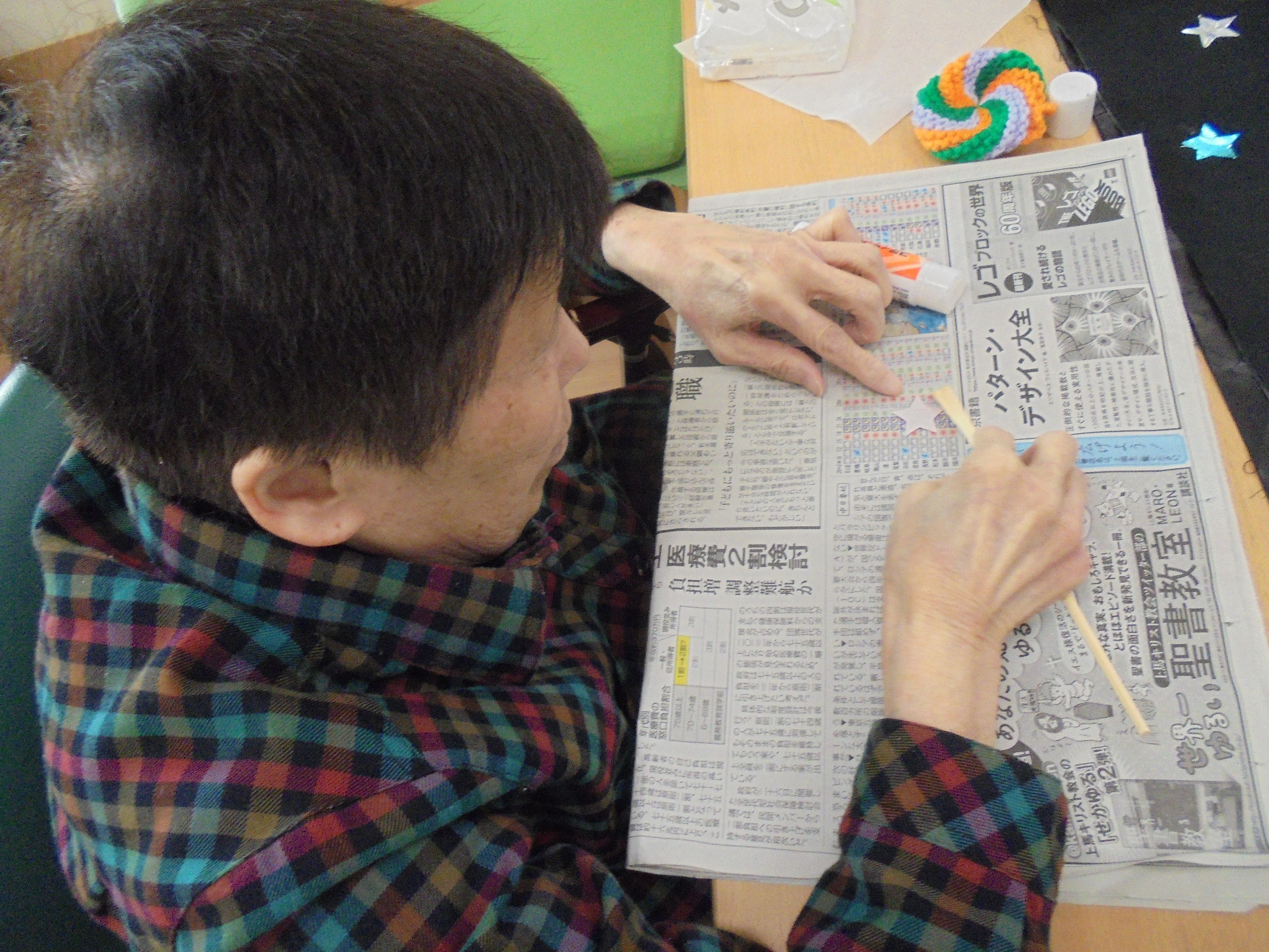 ご利用者様と一緒にフロアに飾る作品作りをしました~☆