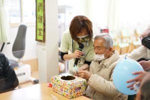 まずは風船を曲と同時に回して、曲が止まった時に持っていたご利用者様に質問!!