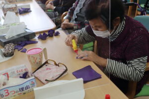 前回のしだれざくらに引き続き、今回は紫色の紙を使って何か作成中です😍❤️