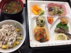 さつま芋に秋刀魚に銀杏にきのこと秋尽くしです🍚