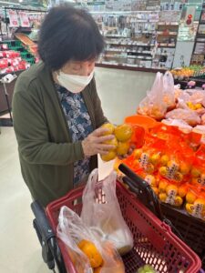 久しぶりの買い物で気分転換にもなり、果物やお菓子等をたくさん購入していました。