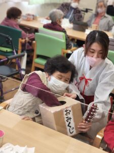 また、職員が巫女さんになりご利用者様におみくじも引いて頂きました