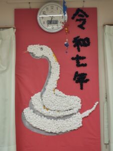 昨年末皆様と一緒に作成した今年度の「巳」壁飾り!!