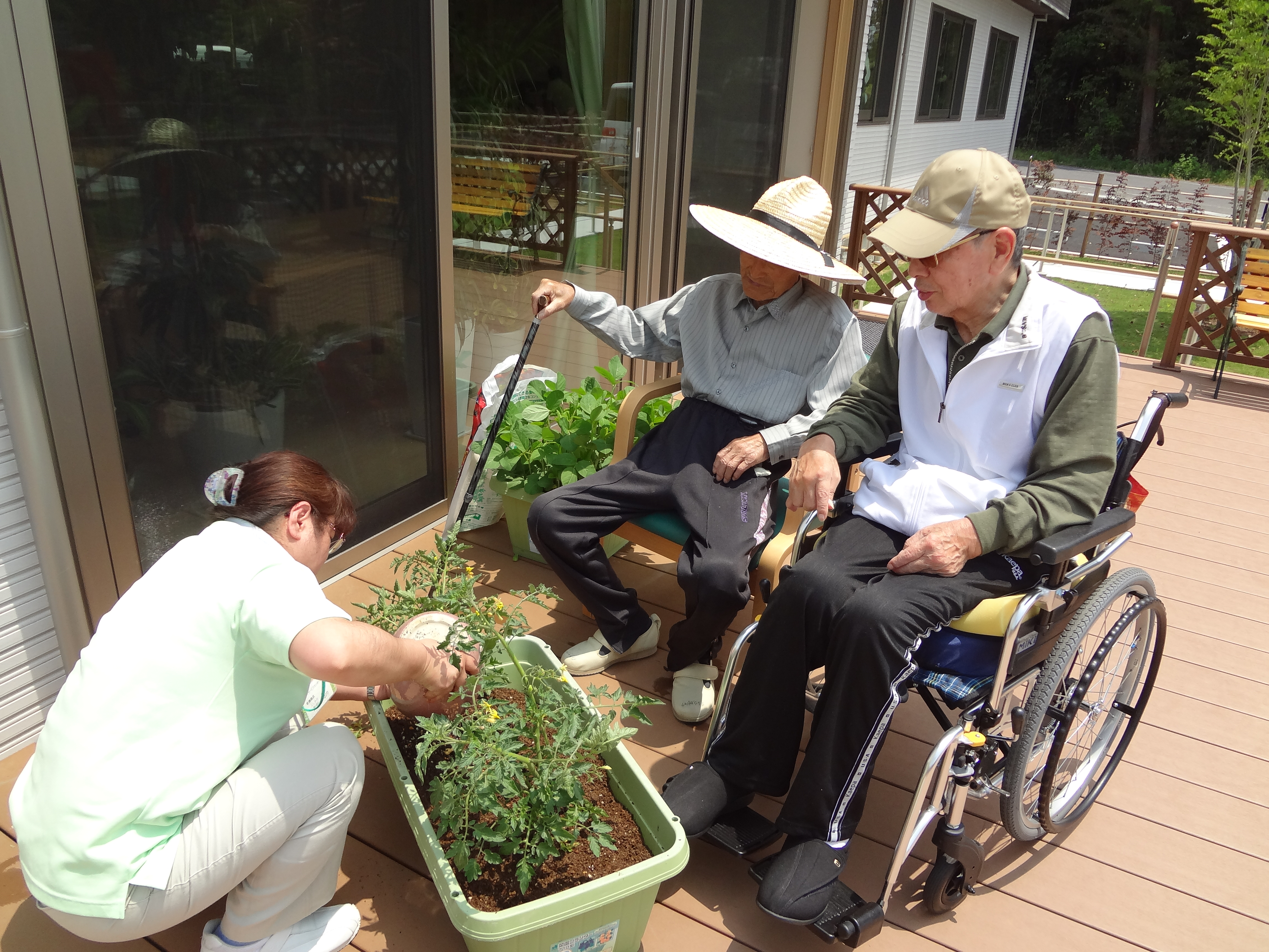 ご利用者様にアドバイスを頂き、農園に苗を植えました。