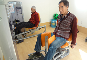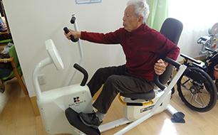 5種類のトレーニングマシンや重り、ゴムバンドによる筋力トレーニング、平行棒や歩行器による歩行訓練、専用のバランスパッドによるバランス訓練、更にはボールやレク用品を活用した運動レクリエーションといった、さまざまな身体活動を行っていきます。