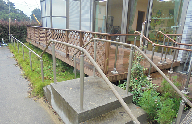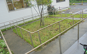 歩行路を利用した歩行訓練 両手すりのコンクリート整備したコース