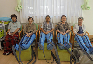 - 足浴やホットパック・メドマ―などのリラクゼーション機器を充実し、機能訓練と併せて使用していただくことはもちろん、日々の疲れや、活動したからだをゆったりとほぐしていきます。また、赤外線による温熱効果を活用し、肩や膝の痛みを緩和する機器もご用意し、ご利用者さまの体の芯から癒していきます。